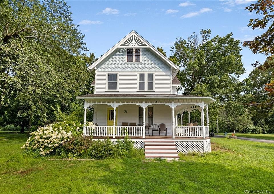 Gleaming hardwood floors, detailed mouldings, beautiful vintage chandeliers, and antique doors are just a few of the features in this lovely 1893 Victorian! Immediately, you are welcomed by a large wraparound porch with period detailing. In the back, the deck, large patio and partially fenced garden area provide ample space for outdoor entertaining in a private setting. In addition to the attached 2 car garage, you also have a red barn for storage. The main floor has everything you need for everyday living and more. A mud room provides a landing space for all that the New England weather has to offer, as well as access to a large finished space above the garage and a door to the kitchen where you will find a laundry room and large pantry. A front entry area, den, dining room and parlor have beautiful period styling and offer plenty of space for festive holiday gatherings. Access the second floor via the front or rear staircase where you will find a large open hall with plenty of light, 4 bedrooms and 2 bathrooms. The primary suite has a walk-in closet. Situated right on Main Street you have easy access to major highways where this light-filled period home on .86 of an acre, with a small vineyard, has all of the space that you need and charm that you desire.