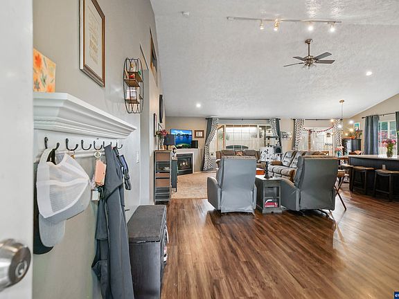 This home offers a great room concept floor plan with new heat pump. The vaulted living room features a cozy gas fireplace, creating a warm and inviting atmosphere. The kitchen boasts stainless steel appliances & an island/breakfast bar. The dining area conveniently opens onto a covered deck in the fenced backyard, complete with a shed and raised garden bed. Retreat to the primary suite, which includes a walk-in closet & a sitting area with dbl closets , ceiling fan, jetted tub, and separate shower.