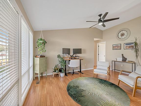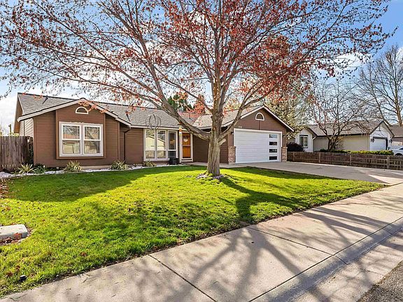 Welcome Home to this charming single-level residence in the heart of NW Meridian. Located in a desirable & friendly neighborhood, this home is close to schools, shopping, & downtown Meridian. The abundant natural light as well as the vaulted ceilings highlight the open family & living room which lead to the inviting kitchen and dining. Down the hallway are two guest bedrooms, a full bathroom, and the primary bedroom which includes an attached bathroom for convenience and privacy. New windows with a transferrable lifetime warranty can be found throughout the home as well as new interior paint and trim. The large backyard is perfecting for entertaining & gardening and features a new shed. BTVAI