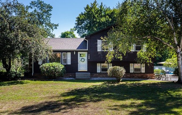 Don't miss seeing this 6 room split level with 3 bedrooms 2 half and one full bath. GREAT LOCATION! Abuts conservation land with private yard. It is move in ready! Stay cozy warm with forced hot air (propane) heat and stay nice and cool with central air. The Kitchen has new high efficiency stainless steel appliances & the home has a new water heater. New insulated entry doors & new storm doors have been installed. The interior has all solid wood doors and custom wooden blinds. Exterior updates include a newer roof (1 layer), new gutters a new stone chimney with matching stone mailbox. The fenced in 16 x 32 in ground pool has new filter and motor. For extra living space, this home offers a 14 x 19 finished room in walk out basement which is also centrally heated and cooled & also has a chimney flue for wood/pellet hook up.