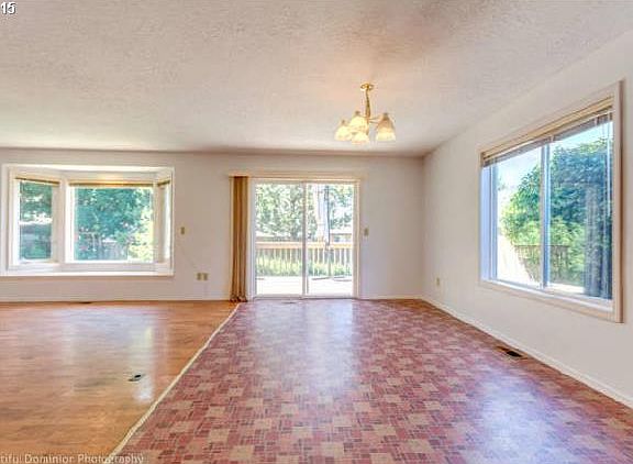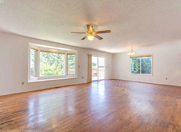 Open floor plan w/tons of natural light! Living room w/wood flooring & bay window. Dining area w/slider to deck. Spacious kitchen w/tons of cabinet & countertop space, a cook's delight! Masters w/two closets can be converted to add 3rd BR. Central vacuum, utility w/laundry & oversized garage. Side yard w/trees & separate fenced backyard w/deck, toolshed & plumbing for gas. RV parking w/waste hookup, Rain Guard gutters, new water heater.