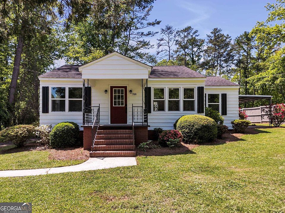 Welcome to your dream home in the heart of Holly Springs, GA! This beautifully renovated 3-bedroom, 2-bathroom ranch-style residence sits on a sprawling 0.69-acre lot, offering a perfect blend of modern comfort and serene privacy. Step inside to discover a meticulously updated interior featuring new paint, flooring, and cabinets throughout. The floorplan has been thoughtfully reimagined to maximize space and functionality, creating an inviting atmosphere for relaxed living and entertaining. The heart of the home is the stunning kitchen, adorned with solid stone matte countertops that beautifully complement the sleek cabinetry. Whip up culinary delights with ease and style, then gather with loved ones in the adjoining dining area for memorable meals. Unwind in the comfort of the spacious primary bedroom, complete with a tiled walk-in shower in the ensuite bathroom for a touch of luxury. Two additional bedrooms offer versatility for guests, a home office, or hobby space, ensuring everyone has their own retreat. Convenience meets efficiency in the expansive mudroom/laundry room, providing ample storage and organization options to simplify daily routines. Outside, the level and private lot offer endless possibilities for outdoor enjoyment, whether you're hosting summer barbecues, gardening, or simply soaking up the sunshine in peace. Car enthusiasts and DIY aficionados will appreciate the detached garage/workshop, providing plenty of space for projects and storage. With no covenants or HOA restrictions, you have the freedom to personalize and enjoy your property to the fullest. Location couldn't be more ideal, as this charming abode is within walking distance to the vibrant new downtown city center of Holly Springs. Explore local shops, restaurants, and community events with ease, immersing yourself in the unique charm of this sought-after neighborhood. Don't miss out on the opportunity to make this exquisite home yours. Schedule your showing today and start envisioning your future in this idyllic Holly Springs retreat!