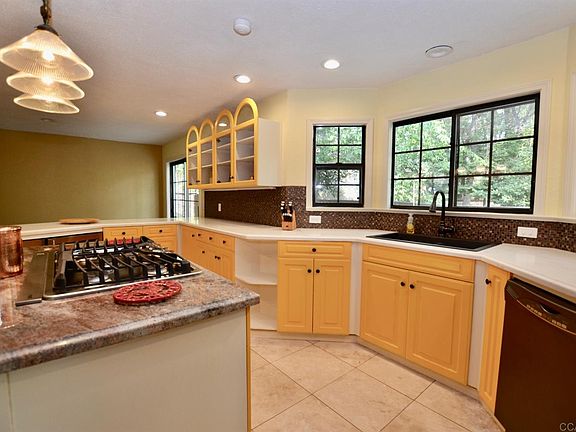 Gorgeous home in perfect location close to Murphys. APN 068-004-007 is included 1.11 acres for a total of 1.76 acres. Home features open livings spaces, beautiful new quartz countertops in the kitchen. Gas cooktop and plenty of workspace complete with wine refrigerator. Lots of natural light. Beautiful stacked rock wall graces the living room. Skylights offer diffused light and the fireplace offers cozy warmth. Master suite was recently added and features a large master bedroom with lovely natural light and a very spacious master bath with artistic touches, walk in shower, soaking tub and beautiful above counter glass sinks. Two more guest bedrooms round out the main floor. Upstairs is a large master suite complete with walk in shower, jetted tub, dual sinks, dressing area and walk in closet. The outside is just like a park setting complete with meandering creek and gazebo. Fruit trees, horseshoe pit and large lawn area for gatherings. The back deck wraps around to a concrete patio area ready for your entertaining or quiet relaxing. The property offers a large shed that could house your garden equipment or really anything you want to do with it. This home offers lots of possiblities and sits back from the road.