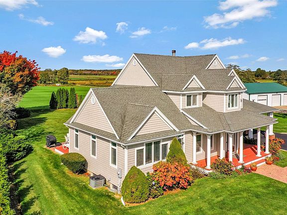 Rental Registration #: 23-0327 Pristine, ideal vacation home on an acre surrounded by preserved farmland. Enjoy expansive views to the north and south all within close proximity to award winning wineries, farm stands, fantastic restaurants, beaches and many golf courses including The Woods at Cherry Creek just 2 minutes away. The spacious home offers an open floor plan including large great room with fireplace and floor to ceiling windows offering wonderful natural light, kitchen with large island for entertaining and plenty of space for dining. The primary ensuite with king size bed is on the first floor with access to the back patio. Two additional guest bedrooms share a full bathroom on the second floor with a convenient loft/office. For additional living space, the basement is fully finished with plenty of room for entertaining. After a day of enjoying all the North Fork offers or exploring the South Fork, relax on the deck or patio overlooking bucolic farmland. Create great memories of your North Fork vacation. Please call for off season rates Permit #23-0327.