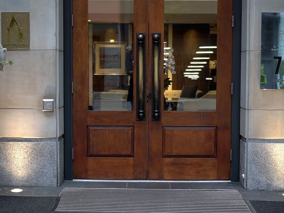 Welcome to L'hermitage en ville, this boutique luxury and amenity rich building offers it all. Signature address with a full time 24 hour concierge in a hotel residence and walking distance to the Robson street shopping district. This 934 square feet home offers, 2 bedroom + Den, 2 baths and 1 parking stall. Subzero kitchen appliances, gas cooktop, freshly painted, and brand new Samsung washer + dryer. Easy to show.
