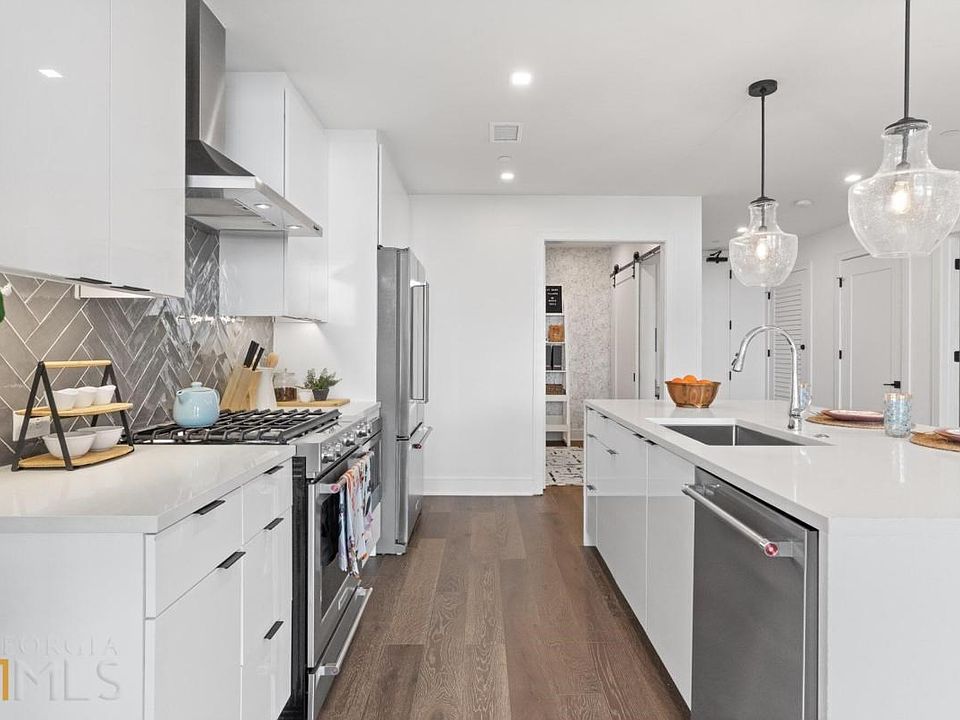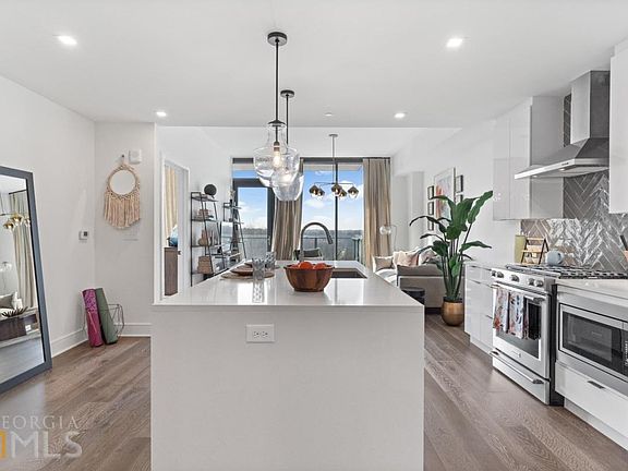 Move in Today! 788 West Midtown rises 22 stories with floor-to-ceiling windows offering sweeping skyline views above this historic post-industrial district only minutes from AtlantaCOs best restaurants, retail, entertainment, and Georgia Tech and Coca-Cola campuses. This 1 bedroom, 1 bath with den condominium features high quality designer finishes, with wide plank wood floors throughout the entire home. The kitchen features European-style cabinetry with undermounted lighting, waterfall edge quartz countertops and tiled backsplash. The gas range convection oven, clean touch full-sized dishwasher, 36C counter depth French door refrigerator cater to your needs at every turn. The bathroom design is distinctly appointed with Kohler plumbing fixtures and timeless porcelain wall tile to create a spa inspired retreat. Backlit mirrors and a glass shower complete the luxurious look and feel. Resort-style amenities include 24-hour concierge, heated saltwater pool & whirlpool spa, fitness & yoga facility, outdoor grilling areas, clubroom with demonstration kitchen, billiards and lounge, bike storage, dog wash with covered secure dog playground, and smart delivery lockers with cold storage for food deliveries. Interior photos are renderings and may not represent floorplan or exact finishes of the home. 2023-05-30