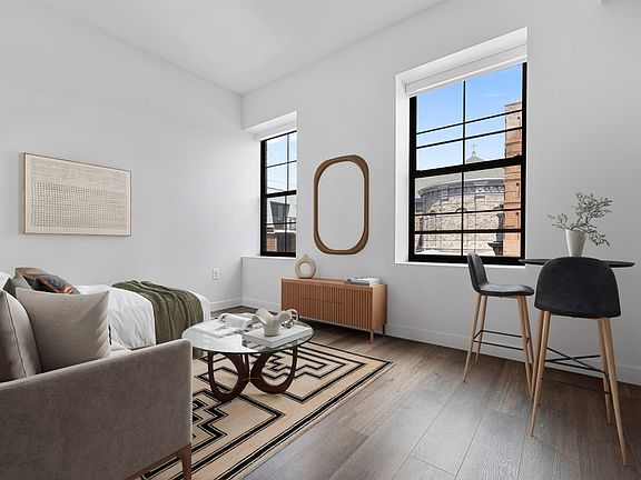 Studio Now Available! Can be furnished! Reduced Security Available on Eligible Applications! Now Offering 3 Months Complimentary on a 17 Month Term Welcome to The Hartby, a building with character - brimming with old-world charm and a new-world mindset. The Hartby offers studio to two bedroom residences - and are a study in accessible luxury, with airy interiors and an impressive collection of amenities. Romanesque Revival architectural charm meets modern convenience for a home as distinctive as its resident. Select residences may feature lofted high ceilings, grand arched windows, original exposed brick and private outdoor spaces. Distinctive layouts are enhanced by the clean lines of contemporary design that meet charming original details and paired with high-quality fixtures and finishes: - Flat front, soft-close modern cabinetry - Solid stone countertops - Wide plank flooring - Stainless steel appliances - Light-filled layouts - Under cabinet kitchen lighting Whether working out or working from home, The Hartby has the perfect spot to do it. Residents enjoy access to comprehensive amenities: - Doorman (P/T) - Roof Terrace with Pergolas, Sundeck, Dog Run & BBQ - Landscaped Courtyard - Indoor Parking - Indoor & Outdoor Resident Lounge - Private Party Room - Party Room - Business Center & Conference room - Fitness Center - Pet Spa The Hartby is nestled between two historic Brooklyn neighborhoods, Bed-Stuy and Bushwick. The vibrant cultures of the neighborhoods converge here, with parks, art galleries, bars, and cafes all within walking distance. Equal Housing Opportunity. Photos and/or 3D tours may be reflective of a similar unit and not the specific listing. *Price shown is Base Rent. Residents are required to pay: At Application: Application Fee ($20.00/leaseholder, nonrefundable); At Move-in: Security Deposit (Refundable) (100%/unit); Monthly: Community Amenity Fee ($75.00/leaseholder); Electric-HVAC submetered (usage-based). Please visit the property website for a full list of all optional and situational fees. Floor plans are artist's rendering. All dimensions are approximate. Actual product and specifications may vary in dimension or detail. Not all features are available in every rental home. Please see a representative for details.