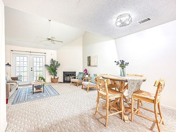 This meticulously maintained townhome is located in the highly desirable The Park at Rivers Edge. As you enter, you're greeted by gorgeous lvp flooring with a spacious floor plan. Downstairs you'll find a large vaulted ceiling living room with an ample amount of space for entertaining with a fireplace, laundry room and guest bedroom adjacent to a full bathroom. The kitchen offers newer appliances, an ample amount of cabinets and counter space for cooking. The spacious upstairs primary bedroom features a walk-in closet, balcony area and a private en-suite featuring a large vanity and a garden tub/shower combo. Step outside to your relaxation paradise where you'll find a large screened in patio with plenty of room to sit back and enjoy the peaceful wooded view in your backyard!HVAC is less than a year old! HOA provides pool access, playgrounds, lawn, trash and much more!