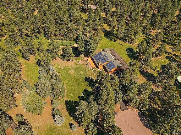 Here’s a diamond in the not so rough. Hurry! Priced to sell to the buyer who has been watching for a value opportunity. Located in a favorite Evergreen neighborhood on two park-like grassy acres, this property offers a variety of indoor and outdoor amenities imaginatively developed over 36 years. Select features include: a studio cabin with re-claimed stained-glass windows, covered porch and rough sawn beetle kill interior; a gazebo in the trees accessed by a footbridge; a privacy fence secludes a three-bay covered parking area; expansive asphalt surface provides ample parking and circle drive entry; massive slabs and stacks of stone form multiple landscape features; plus there's an additional storage shed. The main level garage is designed to accommodate a four-pillar car lift while the walk out lower-level showcases an additional two car garage and mechanic’s dream shop. The bonus room downstairs could be purposed into a home theater, studio or office. Don’t miss the SW Route 66 inspired bathroom! 200-amp electrical service in both heated garage areas. Active solar power. Presented by the estate to the market “As-Is”, with your right to inspect. Buyer to verify all measurements, codes, uses, HOA rules, requirements, county happiness, legalities, condition to their own satisfaction. **For full virtual tour with more photos, video, survey, and floor plan**, go to: https://qrco.de/beGzXa. See it first at the Open House Saturday 8/26 from 10am-12pm.