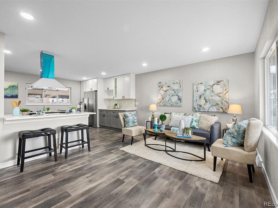 Welcome to this beautifully remodeled home! This property features five bedrooms and three bathrooms, designed to accommodate your lifestyle needs. A stunning new kitchen with new stainless steel appliances. The open concept layout flows seamlessly into a dining and living area, creating an inviting space for family/friends gatherings and entertaining. Enjoy the natural light that shines throughout the home, enhanced by new lighting fixtures in every room. Fresh, new paint and flooring give the home a contemporary and welcoming feel, sure to impress anyone who walks through the door. On the lower level, you'll find additional living space, including a family room and two more bedrooms, alongside a 3/4 bathroom, perfect for hosting guests or as extra space for your family. Parking features a 2 car attached garage and a driveway for additional vehicles. The exterior of the home is just as appealing, featuring new landscaping. Don't miss the opportunity to own this move-in-ready, beautiful home in Commerce City.