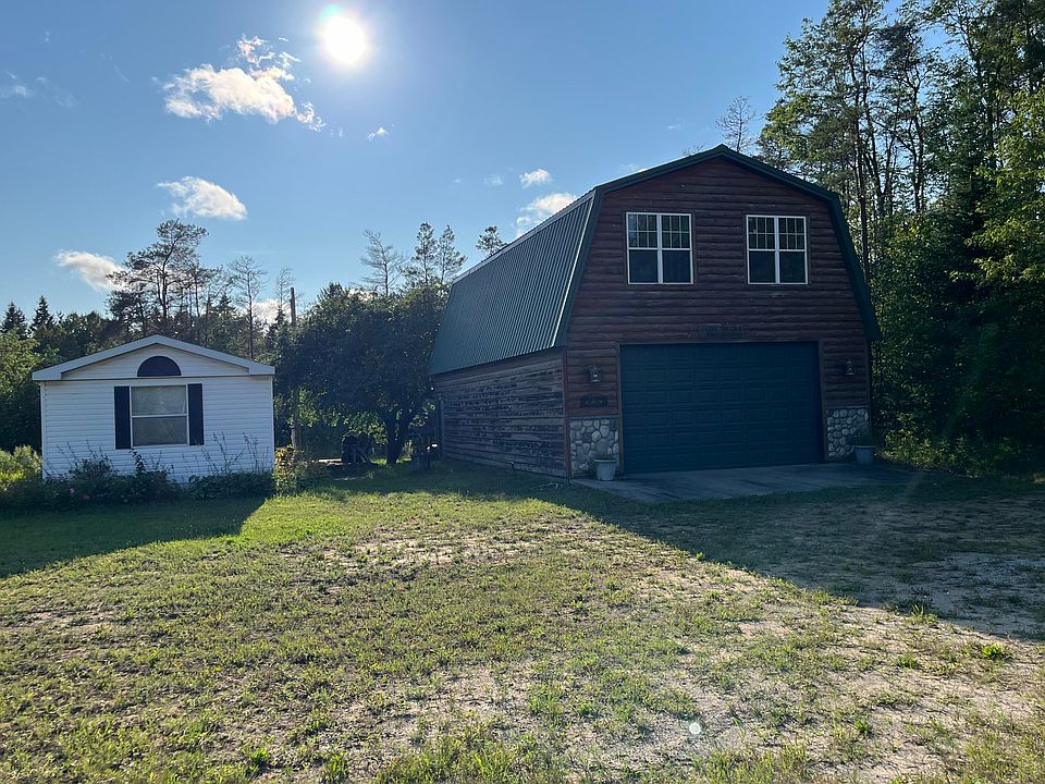 Fully furnished home with detached 2 car garage/pole barn. Split floor plan is ideal with 2 bedrooms & full bath on one end, & primary suite on the other. Primary bath with a corner garden tub & shower. Pole barn/garage has loft area above with a separate back entrance. Loft is partially partitioned leaving endless possibilities. Home is located 35 miles west of the Mackinac Bridge on a paved year-round county road. Short drive to Lake Michigan & close to many upper peninsula attractions.