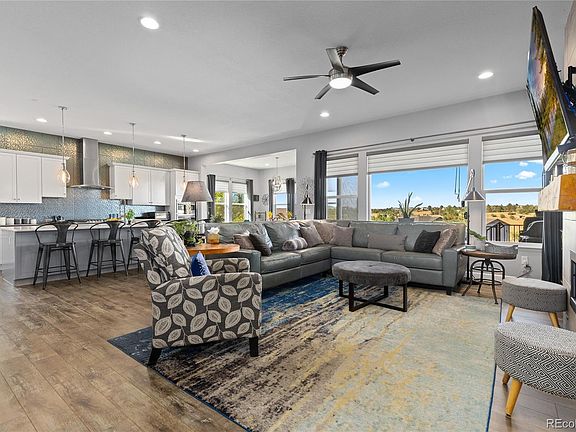 Welcome to the beautiful Whispering Pines Ranch, a meticulously maintained one-story home with a walk-out basement, perfectly positioned on a quiet cul-de-sac with no neighbors behind. This property offers both privacy and community charm, with walking paths, a residents-only clubhouse and pool just steps away. The private backyard is an ideal space for relaxing or entertaining, while the covered upper deck makes outdoor dining enjoyable in any weather. Beyond the neighborhood, you’ll find shopping, dining, entertainment, and the local library close at hand, along with the nearby Aurora Reservoir for those who love the outdoors. Inside, a grand open layout awaits, highlighted by high-end finishes and thoughtful design throughout. The bright and sunny floor plan flows seamlessly across durable laminate wood floors. A gourmet kitchen anchors the space with two-tone cabinetry, an expansive eat-in island, farmhouse sink, and modern fixtures, opening to a large dining area with direct access to the covered deck. The main level also includes a dedicated home office, a secondary bedroom with its own bath, and a luxurious primary retreat complete with a spa-inspired bathroom. The finished walk-out basement extends the living space with a spacious family room that opens to the lower-level patio, along with two additional bedrooms. Recent upgrades such as a new tankless water heater add ease of living, while the low-maintenance yard ensures you can spend more time enjoying your home and community. This move-in-ready gem combines serene living with modern convenience, offering the perfect place to call home.