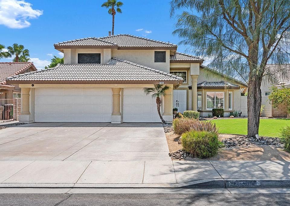 Located on a cul-de-sac in a quiet and serene North La Quinta neighborhood, a beautifully appointed smart home designed for both style and function is ready for a new chapter! Inside, soaring ceilings create a bright, open ambiance with no carpet throughout for a clean, modern aesthetic. The chic, bright kitchen reveals an ideal layout with quartz waterfall edge counters, elegant shaker cabinets with strategically placed glass cabinet faces, counter seating and a large pantry to complete the utility of this stunning space. All three full bathrooms echo the same modern flair, each unique in its own style, while custom closets and automated blinds add an elevated touch of privacy and organization. Generous in size, all 4 bedrooms, including a ground floor bedroom and full bath, extend value and flexibility for multiple audiences. An additional office space downstairs with separate mini-split system and open loft upstairs advance desirable design options for custom living. Step outside to a fully equipped outdoor entertaining area with an elaborate built-in BBQ complete with sink, refrigerator and leisure seating, artfully designed paver patio system, sparkling PebbleTec and tile pool and fire pit area framed by thoughtfully designed hardscape and landscape. The home comes equipped with a sophisticated Control 4 smart home system to control lighting, climate, ambiance and secure entry. With schools, shopping and dining in close proximity, this home offers the perfect pairing of comfort and easy accessibility.