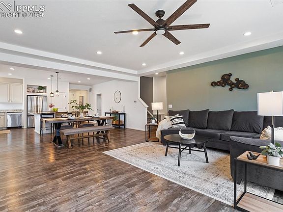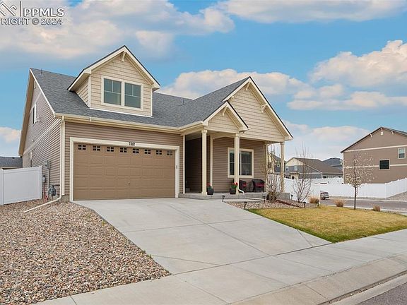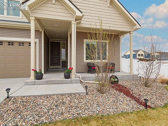 Welcome to this stunning home located in the sought-after Cumberland Green community close to Fort Carson, Peterson SFB, and Schriever SFB. This energy efficient Oakwood designed home offers functionality merged seamlessly with design for your every day living needs. Situated on a corner lot, w/two-car garage, new sod, landscaping, and 6-foot privacy fencing for added seclusion. Inside, the home reveals a spacious open-concept floor plan accentuated w/high ceilings and a lot of natural light. New carpet and LVP flooring throughout. The heart of this home is the gourmet kitchen, equipped with a sprawling island that seats 8, stainless steel appliances, upgraded cabinets, granite countertops, gas range oven, all set against a backdrop of views through the large kitchen windows. The dining space easily fits an 8-10 person table. The oversized living room also fits sectionals and larger furniture. The main-level primary suite is a true sanctuary, featuring an adjoining flex space for a home office or sitting area, a spa-like bathroom with dual-sink vanity, a luxurious walk-in shower, and walk-in closet. The main floor includes a second large bedroom, second full bath, a mudroom and a laundry area.The upper level has an additional suite complete w/full bathroom, ample storage closets, and a loft area. Direct access to the outdoors is from the main level with an extended patio for entertaining and overlooking a beautifully landscaped backyard enclosed with 6’ vinyl privacy fencing. This incredible home has custom cordless blinds, air conditioning, 1500+ sqft of storage in the crawl space, and so much more. This home is zoned for Fountain District 8, walking distance to Eagleside Elementary, close to the local park w/frisbee golf course, biking/walking trails, John Metcalf Park, and close to shopping and grocery options. This home is perfectly positioned. Schedule a showing and make this dream home yours.