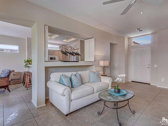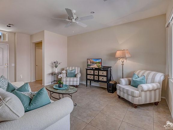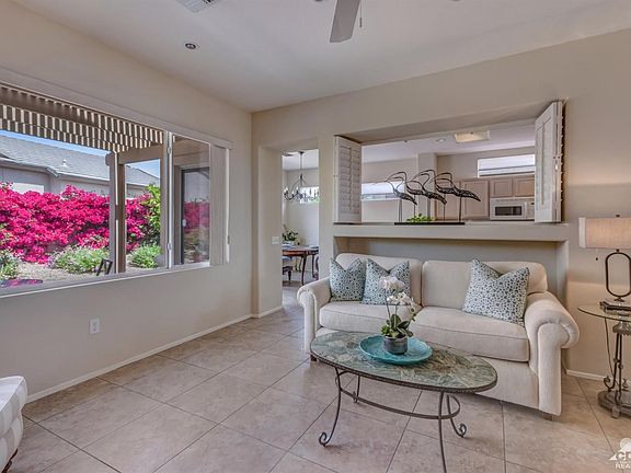 This very popular Lanai model is a perfect home in a great location. The flooring has new 20 inch tile and newer carpet in the bedrooms. The picture window views out to the north facing, easy maintenance backyard with an alumawood cover. The kitchen has a dining area with a view out to the yard. The bedrooms are on opposite sides of the house, perfect for guests. The laundry is indoors with a pocket door. The garage is extended with storage and a Lennox A/C.