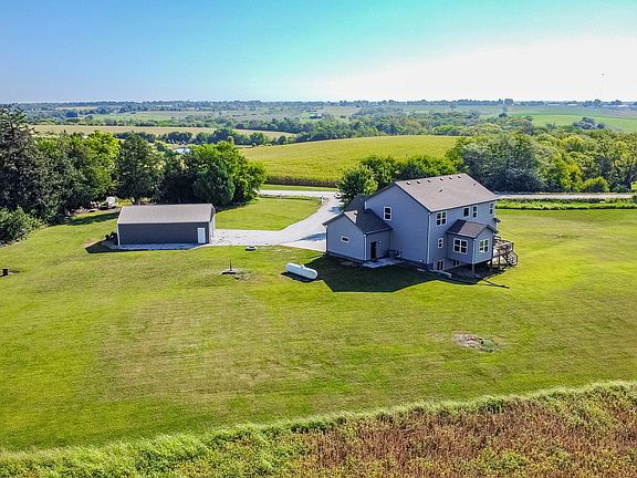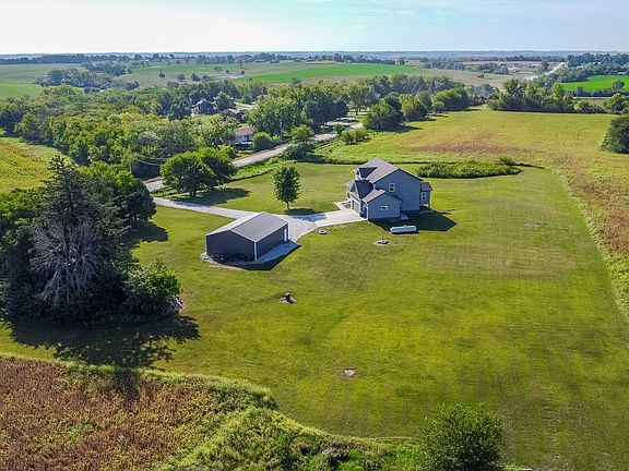 This absolutely stunning two-story home offers a peaceful setting close to the metro, set back from the road for added privacy. The property features a three-car garage plus an additional two-car garage, along with a versatile room perfect for a shop or gym, catering to all your needs. The entry introduces a main floor that includes a dedicated office, a convenient mudroom, and a chef's kitchen complete with a large pantry and island. The open layout also features a sunroom, a family room with a fireplace and built-ins, and abundant natural light through large windows. Upstairs, you'll find four generously sized bedrooms, a laundry room, and two bathrooms. The master suite is a true retreat, showcasing, a luxurious bathroom with a double vanity, soaker tub, shower, and a massive walk-in closet. The additional full bath also has double sinks. The lower level is a walkout and ready for your finishing touches. Situated on over 3 acres, this property offers ample space to spread out and enjoy, with a deck overlooking the beautiful countryside and ideal for outdoor entertaining. New siding 2024. All information obtained from Seller & public records.