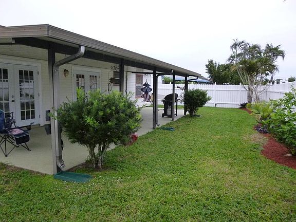 Charming home! Great Schools!! 3/2/2 located on a canal with a fully fenced yard, large covered patio, open patio, vinyl siding, storm shutters and sprinkler system. Roof replaced on '06. The whole house has upgraded copper plumbing. Open floor plan with vaulted ceilings, tile floors in living areas, stainless steel appliances, solar hot water heater, remodeled bathrooms, recently painted interior, closet organizers. French doors lead from family room and master BR to the covered patio and private back yard setting. Nicely landscaped! Very low maintenance fees!! 20 minutes to the Beach!!! Pets ok.
