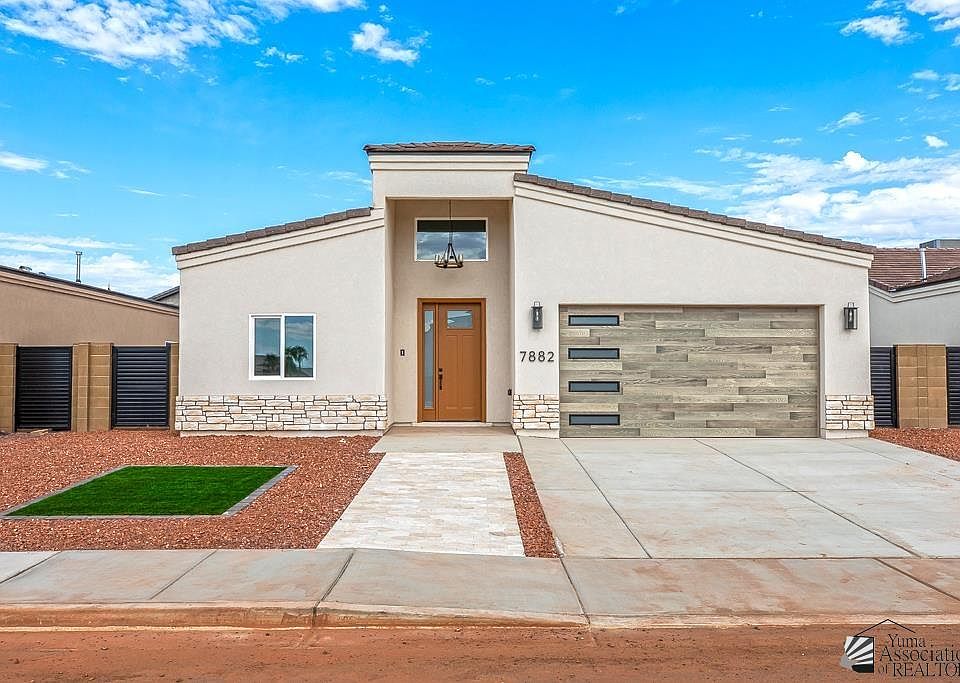 New home at La Vida with beautiful fresh finishes and electric vehicle charger. Tall front door enters into a dramatic high ceiling with a modern fixture. Tile flooring throughout home. Kitchen with white cabinetry, island with storage, quartz countertops, stainless steel gas range, microwave, dishwasher and farmhouse sink. Separate pantry. Dining are?a with chandelier and sliding door to covered patio and block fenced back yard. This home was built with a great room concept and split floor plan. Bathrooms also have quartz countertops and custom tile work. Primary ensuite complete with ceiling fan, walk in closet, water closet and walk in closet.