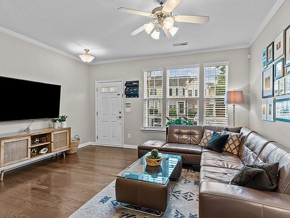 Step inside to be greeted by a bright living room and dining room flowing to a spacious kitchen w/ white cabinets and stainless steel appliances. Sliding doors lead you onto the deck that overlooks a lush, wooded area. The attention to detail is evident throughout the home w/ updated light fixtures that add a modern touch and create a warm and welcoming atmosphere. The bathrooms have been beautifully renovated, featuring elegant tile floors and new vanities. The owner's suite is a true retreat - boasting a vaulted ceiling and barn door leading to a newly renovated walk-in shower and dual vanity. The basement could be a 3rd bedroom or impressive bonus room with access to a private fenced patio. The unfinished basement room makes for a fantastic home gym or ample storage! Don't miss this incredible opportunity to own a home that combines style, convenience, and modern living. Located close to the bustling Brier Creek Shopping Center, this property offers the perfect blend of serenity and access to amenities. Community pool is just steps away! NEW HVAC, Furnace, and Water Heater.