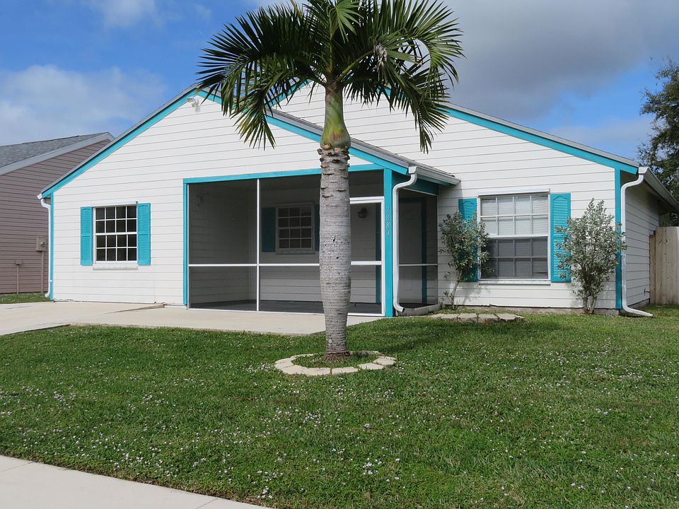 Great single family home ready for your furniture and decorations. Brand new whirlpool appliances just installed in April. Big spacious back yard for your enjoyment. All tile throughout . In addition to the screened enclosed front patio this home also has a bonus room under air in the back. Convenient to shopping and entertainment to the east and the west. Access to the turnpike is a few minutes away. Newer A/C and water heater. Large laundry room with easy access to A/C with brand new fan motor just installed in April . Big shed on property. Hurricane shutters for all windows. 4 zone irrigation system makes it easy to keep your yard looking great.