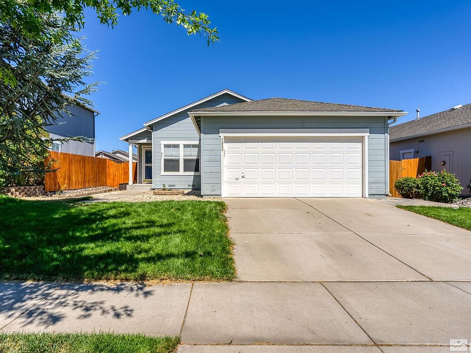 Settled in Lemmon Valley, this single-story home is a remarkable opportunity for a new homeowner. A sought-after floor plan for many, the living room and kitchen transitions allow for an optimal open concept. Complimentary to the open floor plan, the recently upgraded wood flooring and interior paint throughout the home. The home includes a two-car garage, with luscious green grass on either side that surrounds the mature trees at the front of the property., Quaint backyard that allows for the space to have a hot tub with included electrical hookups. This gorgeous neighborhood of North Reno is conveniently located to shopping and restaurant amenities, all without having to go all the way into town. Favorable in size, this three bedroom, two bath home will be worthwhile for any buyer who is looking for their first home.
