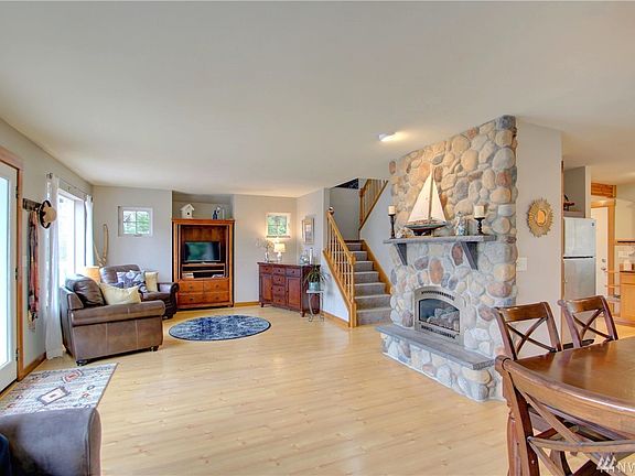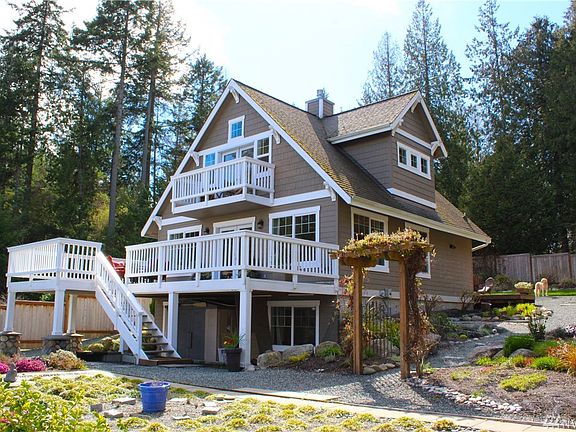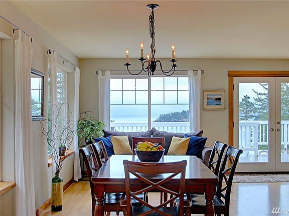 Fabulous views & gorgeous gardens surround this charming island home. Three stories with main level designed for entertaining. Master and additional bedroom upstairs with large soaking tub in the bathroom. Downstairs includes family room and guest room with extensive storage. Minutes walk from the beach with a private buoy in one of the island's most protected bays. Access to 3 private beaches, one with a boat ramp. Exceptional sunrises over Mount Baker and islands from every level of the home!