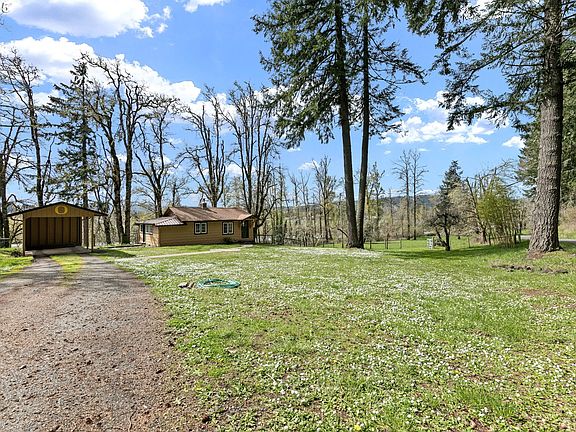 Spectacular opportunity to own 5.84 acres along Row River and it's 5 min from town. This charming 3 bed/2 bath home has been updated with new electrical, plumbing and insulation. The home was recently painted, has newer windows and a mini split HVAC. The finished downstairs offers the opportunity for a separate apt. complete with it's own entrance. The home offers a detached carport and a shop with power. Enjoy the outsanding views of the Row River flowing by! The land is useable and fenced.