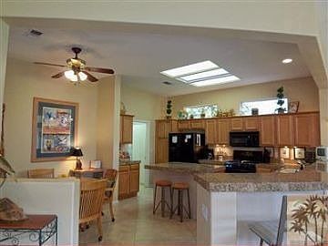 Fully extended Morocco w/Casita & upgrades galore. Guest suite, w/double French doors to front courtyard, has been extended & includes private bath. Plus there's an added powder room. Wall in the kitchen has been removed creating a great room w/sit-up bar separating kitchen from living area. Features of kitchen include breakfast nook, granite countertops, under-cabinet lighting & an extended island w/skylight above. Great room has built-in dry bar w/granite countertop. Current owner uses the den as a formal dining room for intimate dinners. Master has bay window. Designer ceiling fans & custom window treatments throughout. Courtyard between house & casita has a vine-covered Alumawood cover-a relaxing place to lounge on warmer days. Large backyard w/desirable southern exposure has a European look w/its espalier on back wall. Garage w/golf cart space has been extended 4'. House also has instant hot water & evaporative cooler. Furniture may be available outside of escrow
