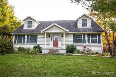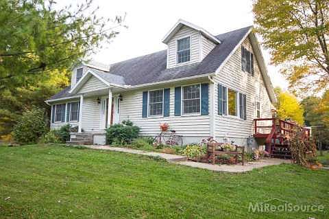 SUBJECT TO SHORT SALE BANK APPROVAL. 10.94 Acres, 2 Ponds, 1937 Sq. Ft. Cape Cod Style Home. Mstr Bdrm w/Full Bath w/Jacuzzi Tub on 1st Flr. Living Rm off Foyer Entry. Open Kitchen w/Oak Cabinets, Vinyl Floor, Open to Eating Area, Great Room w/Gas Fireplace. Doorwall to Rear Deck. 2nd Floor 2 Bdrms w/Skylites & Full Bath. Neutral Tones. Needs Paint & Carpet. Walkout Unfinished Bsmt w/1/2 Bath to Pond at Back of Home. Pole Barns & Sheds on Property. EXCLUSIONS APPLY. Sold AS IS, 1 Lender. Buyer responsible for any/all inspections incl. Well/Septic if wanted/required. No appliances included. Buyer responsible for $295 short sale fee.