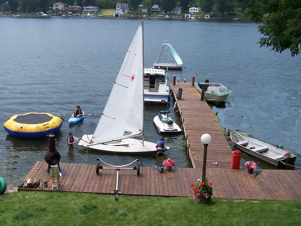 No Flood Insurance Needed!--NEW BREAK WALL plus NOW ON SEWERS. Built in 2002. Approx. 3,651 sqft. Walk to your dock & enjoy the view. 6 Bedrooms, 3.5 Baths, Open Floor Plan. Zone Heating, Fully Screened PORCH for EZ Entertaining.Walk-out Basement, Huge Garage with Second Floor Workshop or Office. Possible In-Law. Enjoy with Family, Friends OR Rent by the week! This is Paradise! Peaceful Setting, Close to Port Bay Golf Course. Note: Some Furniture & Boats are negotiable. Just Move in and Have Fun! Fun!