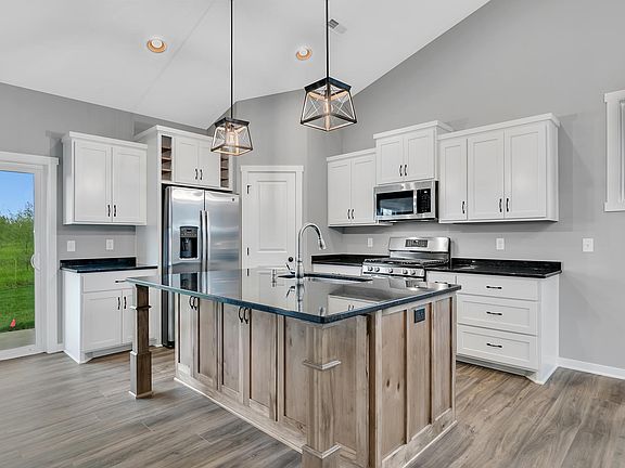 Expectations will be exceeded! Designed with intent for a functional floor plan merged with the selections and detail you hope for. Fieldstone home welcomes you with a vaulted main floor living, dining, and kitchen. Calculated window selection maximizes both natural light and future furniture placement. Appreciate kitchen design that incorporates corner pantry, granite tops, painted cabinetry, access to backyard via patio door, and a desk nook. Crafted with the stair system centrally located maximizing function on the main floor which includes a nice mudroom that leads to your much desired 4 stall garage. Upper level hosts 3 bedrooms with the master boasting walk in closet and private bath. Lower level has a finished laundry and and unfinished space that would suit additional bedroom, bath, and family room that also walks out. Love where you live!