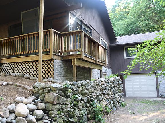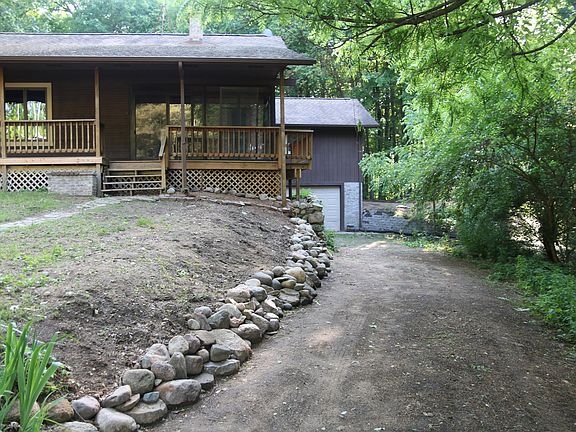 What a unique property - summer get-away, or year round secluded lake front property with over 19 acres offering 1100+ feet of lake frontage on a private lake with only 8-10 other residences on the lake! Perfect opportunity to renovate, add-on or with this much acreage, start over & build your dream lake front retreat. The rustic style home has 2 bedrooms, each with their own bath; new flooring in the kitchen. DR & LR w/ older wood flooring. Newly carpeted & freshly painted thru out, including newly stained exterior. Walk-out lower level has wood stove in case you prefer to heat using the wood from your land vs propane. Addt'l room ideal for office/den with entry room serving as family room. There's also a finished room off the garage that make a nice ''man cave'' or home gym. If that's not enough, there's also an extra pole barn for storage of all the water toys, lawn tools, extra vehicles , etc. Regarding the upcoming assmt: A permit has been issued to Egle for dam repair but no time frame know for assmt. to be levied or work to be done. Could be 2 months or 2 years. This property consists of 4 parcels making up the 19.5 acres, 2 of which are lake front so assuming 2 assmts. will be levied on this property. *See agent comments for details.