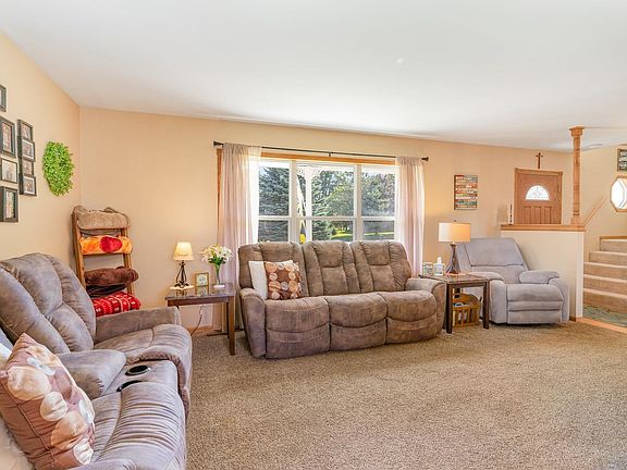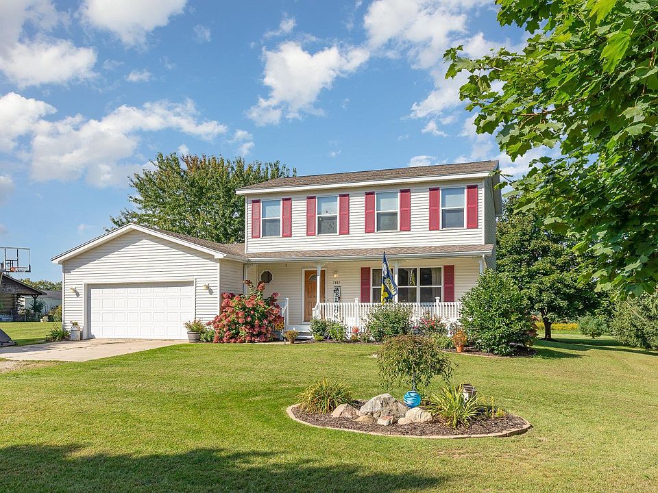 LOVELY UPDATED 2 STORY WEST OF CITY OF ALMA OFFERS A CHARMING & WELL LOVED HOME OFFERING 3 BED (4th bed option in lower with egress) 2.5 BATH ON 2 ACRES PARTIALLY FENCED YARD, WITH ATTACHED 2 CAR ON FULL BASEMENT. HOME HAS FRESHLY PAINTED INTERIOR ROOMS, THE ENTIRE FRONT PORCH, ALONG WITH MOST OF THE INTERIOR. THIS MOVE IN READY, ADORABLE HOME HAS SO MANY NICE FEATURES INCLUDING AN EAT IN KITCHEN WITH PATIO DOORS TO THE BACK YARD, OAK KITCHEN CABINETRY WITH CERAMIC COUNTERTOPS, STAINLESS DOUBLE SINKS, DUAL PANTRY CLOSETS, A NEW FRIDGE, AND A FORMAL DINING ROOM. JUST INSIDE FROM GARAGE IS A WALK IN CLOSET FOR COATS AND MISC, A HALF BATH OFF KITCHEN, LAUNDRY WITH WASH TUB, & ACCESS TO GARAGE AND ACCESS TO THE BACKYARD. HOME FEATURES INCLUDE A SEMI OPEN STAIRWAY TO SECOND LEVEL, ALONG WITH 2 FULL BATHS UP AND ALL THREE BEDROOMS. MANY UPDATES INCUDE UPDATED PLUMBING/FIXTURES IN BATHS, LIGHTING FIXTURES, CENTRAL AIR, NEW ROOF 2017, AND PARTS OF THE STOCKAGE YARD FENCE. TRASH PICK UP IS INCLUDED IN COUNTY TAXES, PLAYSCAPE STAYS WITH SALE ALONG WITH NEWER FENCE AND THE SHED. THERE ARE CEILING FANS IN MANY ROOMS. ALL APPLIANCES REMAIN WITH THIS SALE. MASTER BEDROOM IS AN ONSUITE AND HAS A DOUBLE SHOWER. PLENTY OF CLOSET SPACE. THIS IS A VERY IMPRESSIVE HOME. THIS HOMEOWNER MADE LOVELY UPDATES AND I LOVE THE COVERED PORCH AND THE PRIVACY FENCED BACKYARD. THE LOWER LEVEL HAS PAINTED/WATERPROOFED WALLS THAT COULD BE FINISHED AND A RAISED CONCRETE AREA FOR EXTRA STORAGE. FRENCH DOORS IN LOWER ARE FOR THE DINING ROOM TO THE LIVING ROOM. THIS IS A MUST SEE HOME! HOME ALSO OFFERS NATURAL GAS HEATING AND AIR CONDITIONING AND SPECTRUM HIGH SPEED.