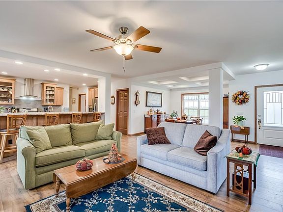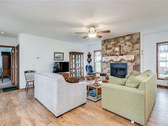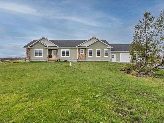 Like new ranch home located just outside village of Lowville. Walk into a breezeway with large 2-car garage with rear drive through door to your right. Home features 1st floor laundry, modern kitchen with adjoining living room with fireplace and dining room, master bedroom and bath and large closets for plenty of storage. There are several upgrades to the home, including storm doors, water softener, seamless gutters, hard-wired backup generator, full walk-out basement with separate office space. Storage shed and barn on 5.8 acres. Furnace is set for a/c hook-up.
