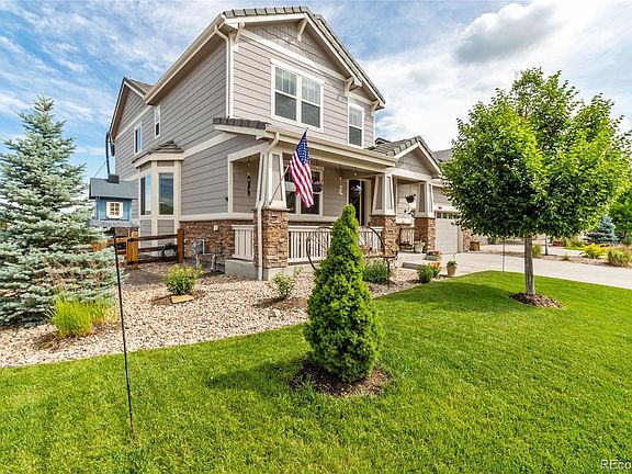 You've found it! This gorgeous 4 bedroom, 3 bath two story home situated on a corner lot in Cobblestone Ranch is a must see. Beautiful landscaping creates abundant curb appeal. The inviting front porch beckons you inside to be even more impressed. Upgrades, upgrades, upgrades! White oak flooring in foyer, kitchen, and breakfast area. Main level has an office with lovely french doors, a formal dining room with sunny bay windows, a spacious living room with more bay windows, surround sound, and a stack stone fireplace with a custom barn wood mantle and slate hearth. The gourmet kitchen includes alder cabinets, granite counter tops, quality stainless steel appliances, double ovens, a butler's pantry with wine fridge, a breakfast area with sliding glass doors that lead to a large deck, concrete patio, green lawn for the kids and pets, and raised garden beds for the homesteader! Upstairs has a spacious master suite with 5 piece bath and walk-in closet and ceiling fan, three more bedrooms - each with a ceiling fan, a full bath with dual sinks, large linen closet, and laundry room with a sink and cabinets. 8' doors throughout the home. The large basement is ready for you to finish for even more living space. The tandem 3 car garage offers plenty of room for cars and tools. The clubhouse, pool and tennis courts are within walking distance and a new Regional Park is coming in the Spring of 2022. Desirable location near Parker Road for convenient commuting. This is home!