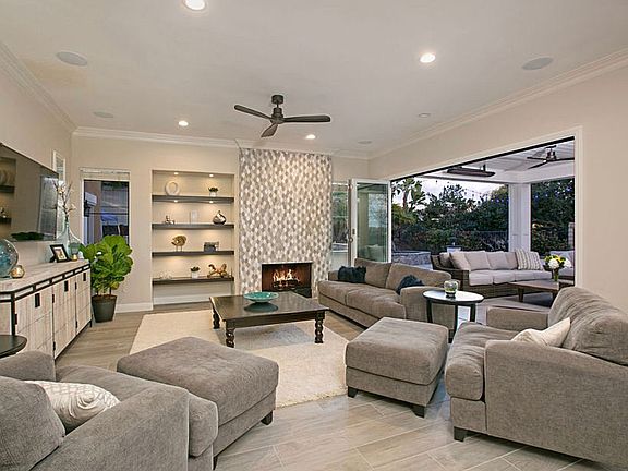 This beautiful remodeled La Costa Valley home has room for everyone with features you'd expect to live the So Cal lifestyle- hardwood simulated tile floors, 9' ceilings, top of the line Thermidor appliances, quartz and quartzite countertops, solar, and a private entertainer's yard. Spacious kitchen opens to the family room and has ample storage space. Downstairs BR with en suite bath is perfect for guests, a nanny or extended family. Other Features include a formal entry, soaring ceilings in the living room, fireplaces in the living room, family room and master bedroom, master spa retreat, large closets, upstairs living space. The yard is an entertainer's dream with an outdoor kitchen, fire pit, dining area, seating area, privacy and a custom spa with waterfall. HOA fee includes access to fitness center, pools, and tennis courts. La Costa Valley is within a desirable school district and close to restaurants and the Forum shopping center. Owner is real estate broker. Direct buyers only. No broker commission will be paid.