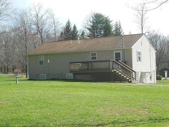 Well maintained 3 bedroom, 2.5 bath home has all the conveniences of one-floor living. Convenient main-level laundry room, master bath, open living/dining area. The basement is a poured wall foundation and is totally finished inside, with a central family room, 1/2 bath, and two finished office/study rooms. All move-in ready! The large 4.9 acre lot is about 60% yard and 40% woods, set apart from any close neighbors. Rear deck for outdoor enjoyment, large back yard, and two utility sheds for storage. Plenty room for expansion too!
