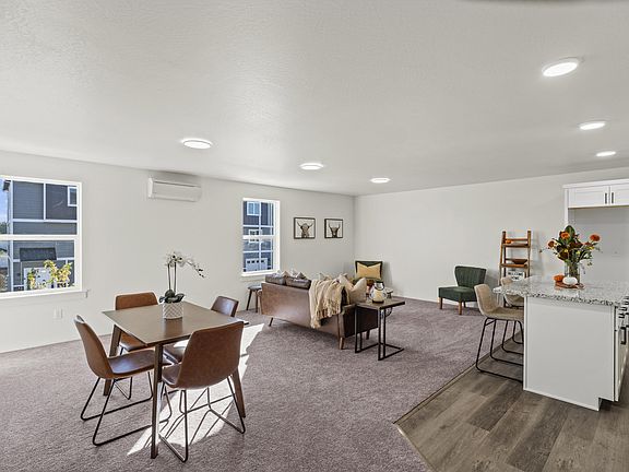 Discover contemporary elegance with this townhome by Olaf & Company, LLC. This 1,589 sq. ft. home is one of the largest homes on the street. It features three bedrooms: a ground-floor bedroom and two upper-floor bedrooms, each with an ensuite. The spacious kitchen boasts granite countertops and upgraded cabinets, perfect for cooking enthusiasts. The open-concept living and dining areas are ideal for relaxation and entertaining. The upper floor includes washer and dryer hookups. Enjoy stunning views from the top floors, an oversized single-car garage, a fully fenced backyard, Milgard windows, and 100% Hardie Siding. Entryway storage & built in desk in the kitchen adds functionality. Energy Performance Score of 56 saving you money on energy bills. With only two units left, seize the opportunity to own one of these exceptional homes by Olaf & Co.!