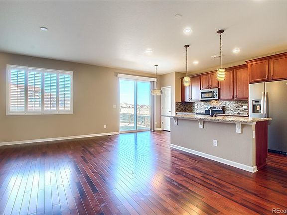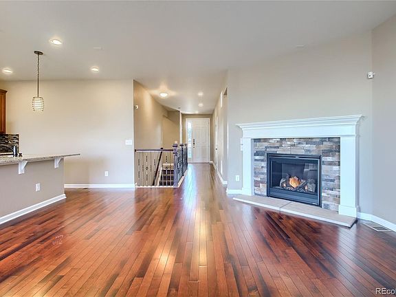 Stunning 3 bedroom home in the highly sought after Cobblestone Ranch community! This home features an open floor plan with large great room complete with fireplace to keep warm on those cold winter nights and is open to the kitchen and dining area. The kitchen is an entertainer's delight with stainless appliances, upgraded counters, custom backslash, a large island that includes bar seating, upgraded pendant lighting, a pantry and plenty of counter space perfect for entertaining! The dining area is adjacent to the kitchen and features a modern chandelier and backyard access. The primary bedroom won't disappoint with a large walk in closet and en suite bathroom. Two additional bedrooms share a additional full bath. The large unfinished basement is ready to be converted into your dream wine cellar, game room, home gym, home office or additional guest quarters. Step out in your backyard to relax and enjoy the fresh air with plenty of additional space for a garden, play equipment or for your furry friends. Community features amenities include a park and playground. Located in close proximity Lone Creek Farms, Gemstone Park, Springer Park, Castle Pines Golf Club and Club at Pradera. You're just a short drive to Castle Rock Factory Outlets, Milestone Shopping Center and several other area malls/shopping centers. With so many nearby options for outdoor activities, shopping, dining and entertainment there is something for everyone!