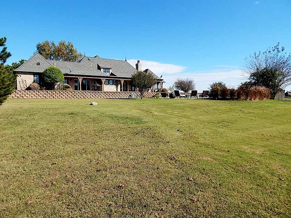 Executive French Country Custom Design Estate with 3 Bedrooms 2.5 Baths, Formal Dining Room with Custom Wood Ceiling that leads to the Built in China Cabinet & Pantry area, Kitchen has State of the art appliances, Stone Farm Style sink, subzero refrigerator, gas cooktop, Built in Breakfast Nook, Breakfast Bar open living area w/ fireplace & custom mantel, Master Suite with Fireplace and walk out to covered patio and swimming pool with hot tub. Bottom land with pasture, springs, and Washita River Frontage.