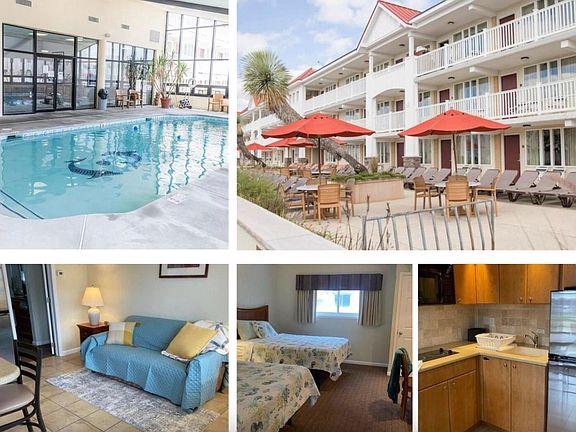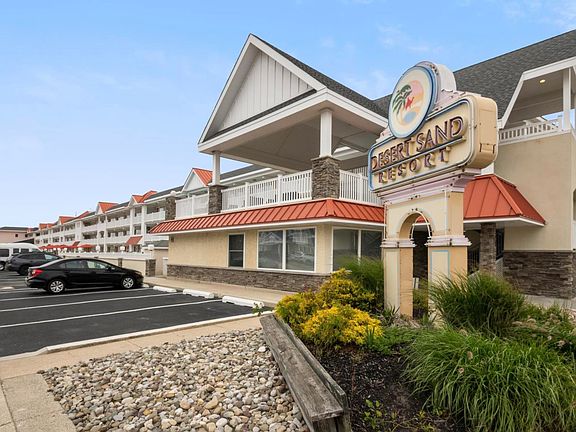 Desert Sand Resort condominium now available. Beautiful YEAR-ROUND complex featuring two swimming pools (one outdoor and one indoor for extended winter use), exercise room, elevator, on site laundry, on site property management. Condo fee of 395/month and it includes common insurances, exterior and pool maintenance, water/sewer, electric, internet and cable. Unit features living room area, kitchenette, and dining space. The bedroom contains two queen-sized beds, and there is additional sleeping space on the full-sized sofa bed. Only two blocks to beach and located in easy walking distance to restaurants, nightlife, and Stone Harbor Rec complex. This condo offers everything you need to spend time at the shore or will provide excellent rental income if you are looking for an investment. Easy to show.