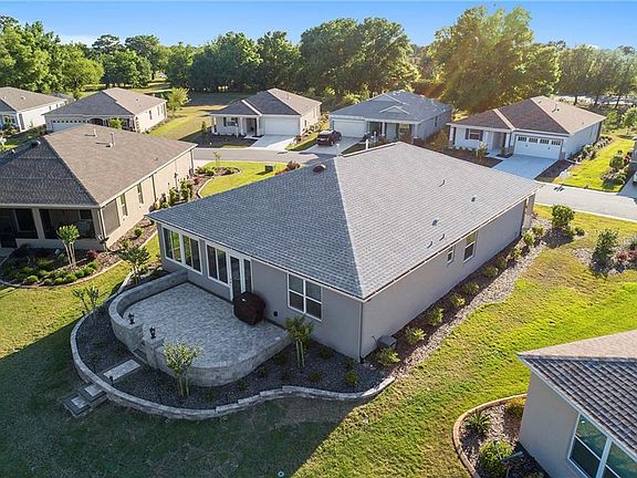 Gorgeous Ginger located in Indigo East with vast views of a green space and easy access to the amenity center! This home has 2 bedrooms, 2 bathrooms, a flex room, and a 2 car garage w/ 4 ft extension. Upon entry into the home you will find the guest bedroom and 2nd bath. The 2nd bedroom has a ceiling fan, carpet and closet. The 2nd bathroom has quartz counters and a single vanity sink. The flex room with glass French doors is currently used as a formal dining room. The kitchen features a large island, granite counters, tile backsplash, white cabinets and dark gray appliances. The open great room has tray ceilings, ceiling fan, and plantation shutters. The master bedroom has tray ceilings, and a walk-in closet with extra shelving. The master bathroom features a tiled walk-in shower, double vanity sink with a tower cabinet for additional storage, quartz counters, and a linen closet. The enclosed lanai has windows all the way around, tile floors, and a ceiling fan. The magnificent 25x15 paver patio has a sitting wall all the way around with steps leading into the green space. The back is fully landscaped with a retaining wall and lights. Additional features include a gas hookup on the patio, laundry room with added cabinets and counter space, water softener, recessed lighting, and wood-look tile throughout. This home is located on an enlarged lot with views and privacy! Don't wait too long to be the next proud owner of this home!