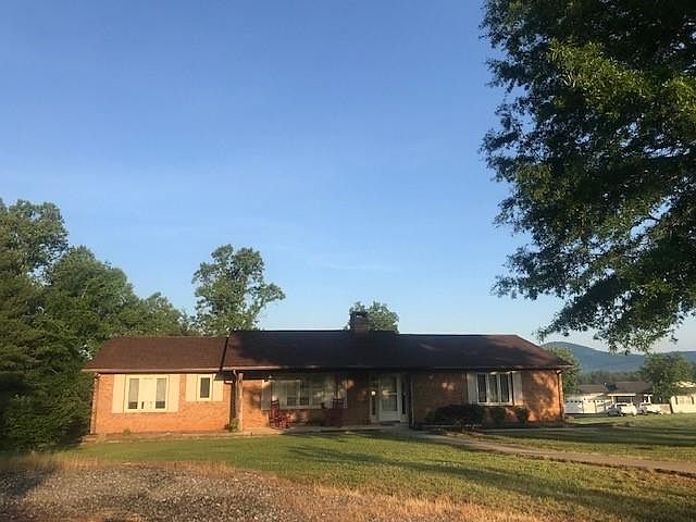 If you are looking for the perfect countryside home with mountain views, this is it! This all brick, 3 bedroom 3 bath home with 2 car attached garage gives you 1,604 sq. ft on the main level and an additional 435 heated sq ft. in the basement as well as a wood burning stove and full bathroom. The drop ceiling is not completed in the basement but would be easy to finish - the ceiling is exposed. New roof and HVAC installed in 2015. The property also hosts an 800 sq ft auto service garage large enough to drive an 18 wheeler tractor into the bay with an additional utility room. There is an additional storage building behind the house as well. Come enjoy this 1.04 acres of tranquility.