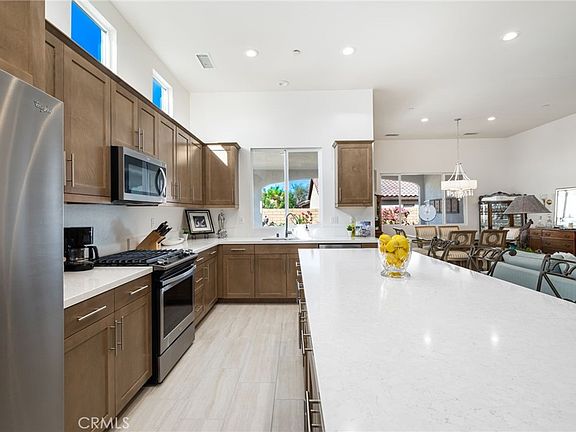 Price Reduction ~ Seller is Motivated! Fall in love with this Beautiful Palm Desert Home, located in the Active Lifestyle 55+ Community of Renata at Domani. The home boasts custom designs, impeccable attention to detail, and artistic sophistication. From the moment you step inside, you'll be captivated by the seamless blend of style and comfort, creating a truly inviting atmosphere. The open-concept living space is perfect for both everyday living and entertaining, featuring abundant natural light, and designer touches. THE GOURMET KITCHEN is a Chef’s dream, complete with slide-in range, custom cabinetry, and a spacious island with stunning quartz countertops that doubles as a gathering spot for family and friends. Each room in this home has been thoughtfully designed with a unique touch, reflecting an artistic flair that sets this property apart. THE PRIMARY SUITE is a tranquil retreat, offering a spa-like bathroom, custom vanity that will impress even the most discerning buyers. The second bedroom offers a comfortable living space that guests will love featuring a gorgeous en suite bathroom. AMENITIES: Live the Domani lifestyle with all it has to offer including Pool and Spa, a spectacular Clubhouse, Tennis Courts, Gym, Bocce Ball, and more. Do Not Miss Out ~ Your New Home Awaits!