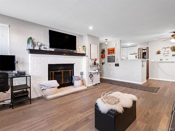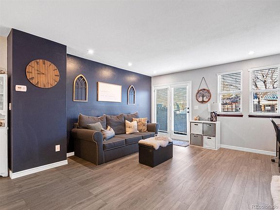 Welcome to this charming condo at Club Crest. Ideally located in Arvada it's minutes from shopping centers, Indian Tree Golf Club, and multiple parks. As you enter you are greeted by the beautiful new wide vinyl plank floors. The living room is spacious with a sleek white brick fireplace. Natural light pours in through the French doors that lead outside to a private patio. The kitchen has been completely remodeled with new cabinets, countertops, and refrigerator. There is plenty of space to eat-in and enjoy all the new features this home has to offer such as the new lighting fixtures, the built in shelves, and the open concept. The bedrooms are generously sized, and the bathroom has also been recently updated. Additional highlights include a new washer and dryer, new electrical panel, new furnace, and a new A/C unit. Come see this fantastic home today!