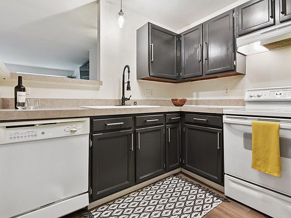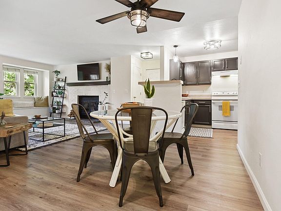This updated 2-bedroom, 1-bathroom condo offers the perfect blend of modern touches and comfort with hard surface flooring throughout. The spacious living room is full of natural light with a window seat, wood-burning fireplace, and access to the balcony area. The west-facing private balcony overlooks the green space, and provides the perfect sitting area to enjoy your morning coffee. The open floor plan seamlessly connects the living room to the dining area and kitchen, which features plenty of counter and cabinet space. Additionally, the condo boasts two generously sized bedrooms with spacious closets. Convenient reserved parking space right in front of the building and a private storage closet in the exterior hallway. Take a dip in the community pool and enjoy walking to nearby grocery stores, restaurants, and coffee shops. King Soopers, Sprouts, Target, Sweet Bloom Coffee, Chick-fil-A, and Great Harvest Bread Company are just around the corner! 8 minutes to Olde Town Arvada and situated ideally between Boulder and Denver with easy access to I-70 and HWY 36. Owner pays for water, trash, and snow removal. Tenant responsible for gas & electric and internet. Security deposit due upon signing of lease. No smoking.