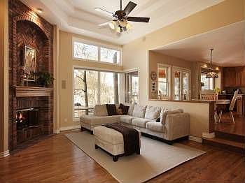 Enjoy the good life in this spectacular home in prestigious Heritage Greens. The wonderful, open family floorplan offers a selection of both casual and formal retreats to entertain, relax and dine. Great curb appeal and a sunny two story foyer with curved staircase welcome you into this beautiful four bedroom, five bath home. The home is move-in ready with fresh paint and brand new carpet throughout. Family and friends will gather in the kitchen with its vast center island, double oven and charming eat in area. Connected to the kitchen is a light and airy family room with immense windows, brick fireplace and gleaming hardwood floors. Other main floor highlights include a spacious dining room, formal living room and main floor study with built-ins. The master suite has a lovely cove ceiling, fireplace and tiled 5 piece bath. The lower level has a fabulous wide open, well-lit recreation room, full bathroom and storage area. Entertain outside in style on the very special covered two tiered deck, with its beautiful cedar beamed roof, ambient lighting and sun shades. The large, private backyard has a gate with direct access to a quiet culdesac. Coveted Heritage Greens is the perfect family neighborhood with a community pool, tennis courts and acclaimed Blue Ribbon Schools.