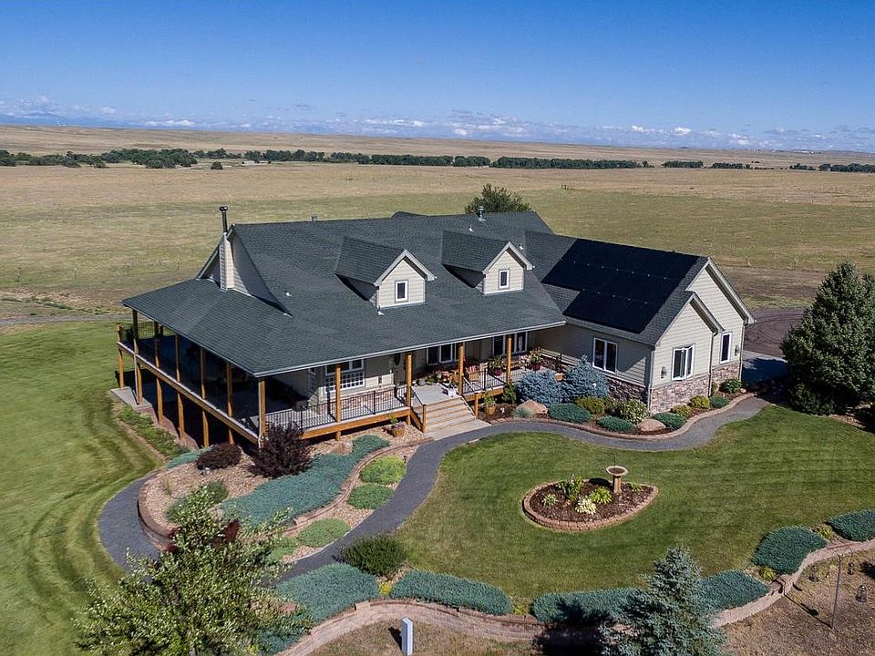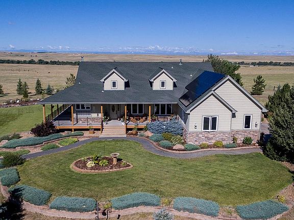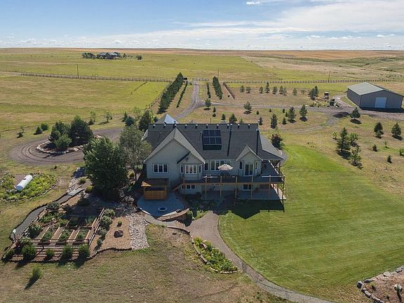 Click on movie reel icons to view 3D floor plan and aerial video! Bask in the quiet beauty of this Jacob Farm 35 acre Ranch with walkout basement! Whether you are relaxing on the covered wrap around deck or meditating on the back patio, enjoy the splendor of the entire Front Range from Long's Peak to Pike's Peak. Also included is a 5,000 sq. ft. outbuilding (220V/wired for generator) w/air compressor and large drive thru doors for a semi. Sellers are professional landscapers and created a wonderful oasis. Dozens of trees surround the estate. Beautiful wood floors, vault ceilings, new rubbed bronze hardware/lighting fixtures, granite counters, stainless appl, ceiling fans throughout, three car garage, 5 large bedrooms, study, wired for theater/surround sound (living and basement rec room), hot tub w/pergola, classic wood stove and TWO gas fireplaces are some of the best features of this beauty. E-470, Southlands Mall and DIA are convenient. This one has been loved, so don't miss out!
