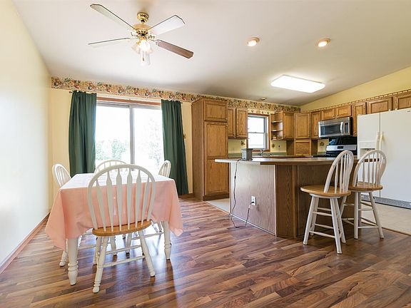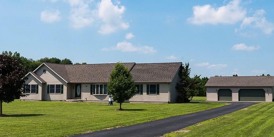 PEACEFUL, PRIVATE ON 2 ACRES! You can check lots of wants off the list with this 3 bedroom home with two full baths. Enjoy an open concept kitchen/dining room with breakfast bar and a main floor finished laundry room that doubles as a mud room off the oversized attached 2 car garage. All bedrooms are generous sized and master has an on suite with whirlpool tub and separate shower. Don't let the no basement fool you, you can stand up in the clean, dry crawl space which is great for storage and accessed from inside the garage. The backyard is lined with beautiful pine trees giving you plenty of privacy. Everyone will appreciate the detached 30/40 insulated barn with concrete floor, extra storage shed and newly paved driveway. All this for $184,000, schedule today!