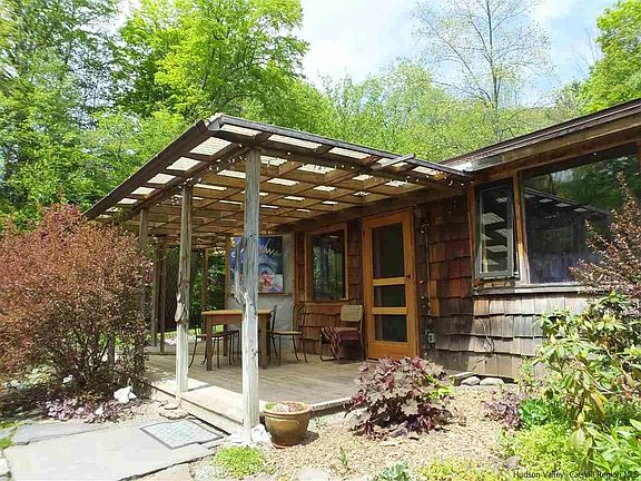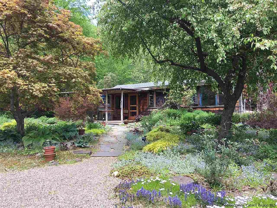 Situated at the site of an historic Catskills summer hotel are two charming cottages on 3.89 acres with a rich past awaiting their next chapter. Both cottages are established short-term rentals - continue to rent or enjoy both with friends and family. The main house, formerly a caretaker's workshop and garage, was built in 1930 and later converted to a 979 sf two bedroom one bath house with a full kitchen, open living space, a wood burning stove, forced air heat, and an on-demand water heater. Gorgeous mountain views of the Chichester area can be seen from nearly all windows, adding to its charm and character. The two-story cottage by the year-round stream, formerly the ice house/storage building, aka "Cottage in the Woods," has been converted to a 696 sf two bedroom one bath house with a full kitchen and bathroom. Each upstairs bedroom overlooks the meticulously landscaped grounds and stream - vaulted ceilings showcase custom stained glass windows on either side. The two-story cottage utilizes electric radiant heat and has its own on-demand water heater. Outside the two-story cottage you'll find remnants of the old summer hotel - its living room fireplace across the stream. Enjoy the outside fire pit while taking in all the beauty this landscape offers: the sound of the stream and wildlife, the picturesque mountain views, privacy, and history make this property a must-see! Just two and a half miles outside Phoenicia and a half hour from Kingston/exit 19, this location provides a host of activities - from amazing dining and shopping to hiking, tubing, and so much more!